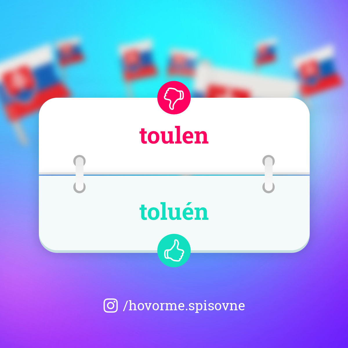 Toluén je kvapalný bezfarebný aromatický uhľovodík získaný z kamenouhoľného dechtu, používaný najmä ako rozpúšťadlo, na výrobu trinitrotoluénu, lakov a farbív, liečiv a pod. (pomenovaný podľa prístavu Santiago de Tolú v Kolumbii). Podobné Toulen? ❤️ Zdravie Aft? ❤️ Zdravie, 🙂 Ženy a muži